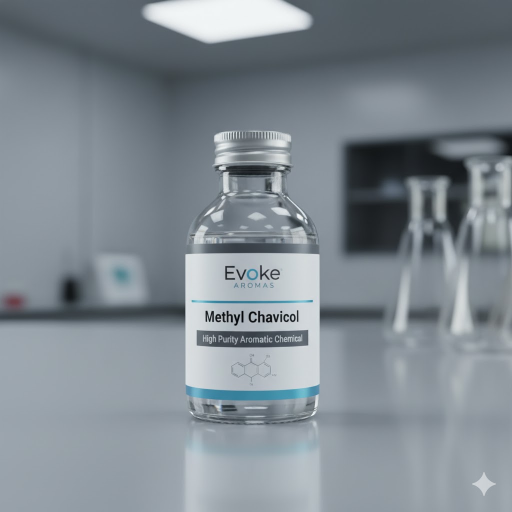 Evoke Aromas offers high-purity Methyl Chavicol, a key aromatic chemical known for its sweet, warm, and anise-like fragrance. Widely used in perfumery, flavoring, cosmetics, and industrial aromatic formulations, Methyl Chavicol adds a natural, long-lasting, and distinctive aroma to various products.
