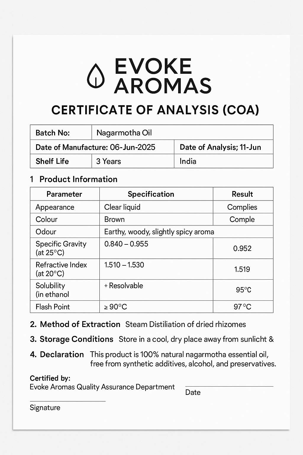 Evoke Aromas brings you 100% pure and natural Nagarmotha Oil, carefully extracted from the roots of Cyperus Scariosus through a traditional steam distillation method. Revered in Ayurveda and traditional medicine, this oil is celebrated for its earthy, woody aroma and wide-ranging therapeutic benefits.